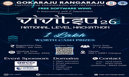 GRIET proudly presents VIVITSU'26 – a 24-hour National-Level Hackathon bringing together innovators from across the country on 30 & 31 January 2026 - Click Here
