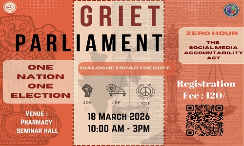 Team Spirals are pleased to invite you to GRIET Parliament, a student simulation of the parliamentary system where participants debate important issues and experience the dynamics of parliamentary discussions. on 18 March 2026 from 10:00 AM-03:00 PM - Click Here
