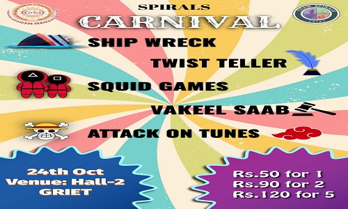 Team Spirals is hosting the 12th edition of GRIET Parliament , a platform for participants to experience India's democracy on 9th April 2025.- Click Here