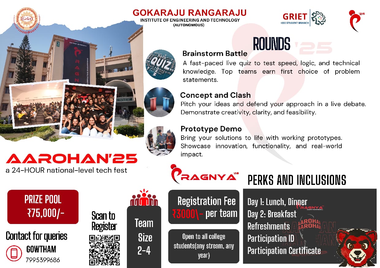 Pragnya'24 - IEEE GRIET's Annual Techno-Cultural Extravaganza Immerse yourself in the spirit of innovation and creativity at Pragnya’24! Join us on November 22nd and 23rd, 2024 - Click Here