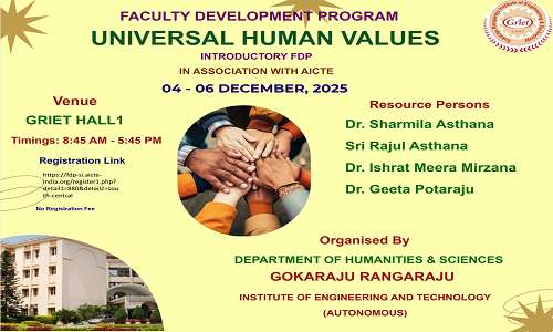 The Department of IT, GRIET in association with Electronics & ICT Academy (Hub), NIT Warangal and E&ICT Academy (Spoke), IIITDM Kurnool, Andhra Pradesh organizes Online FDP on IoT and Blockchain: Securing the Next Generation of Connected Devices from 10th-21st March 2025. - Click Here