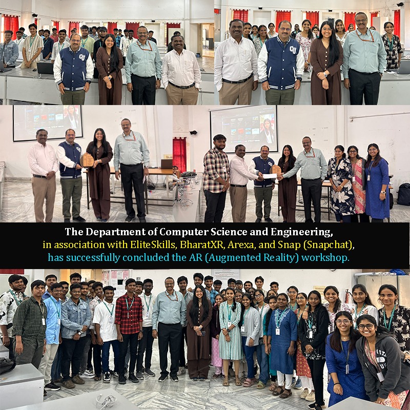 Department of Computer Science and Engineering in association with Eliteskills & @BharatXR & @Arexa | Snap (Snapchat) successfully concluded the AR (Augmented Reality) workshop. - Click Here
